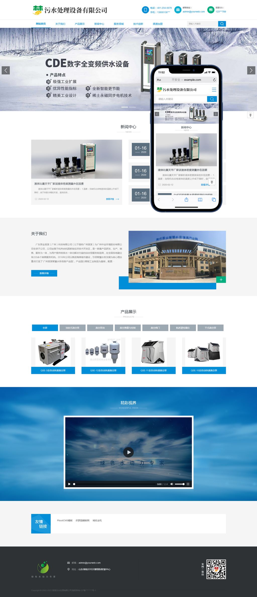 模板名称:(自适应手机端)HTML5响应式环保污水处理设备类网站pbootcms模板