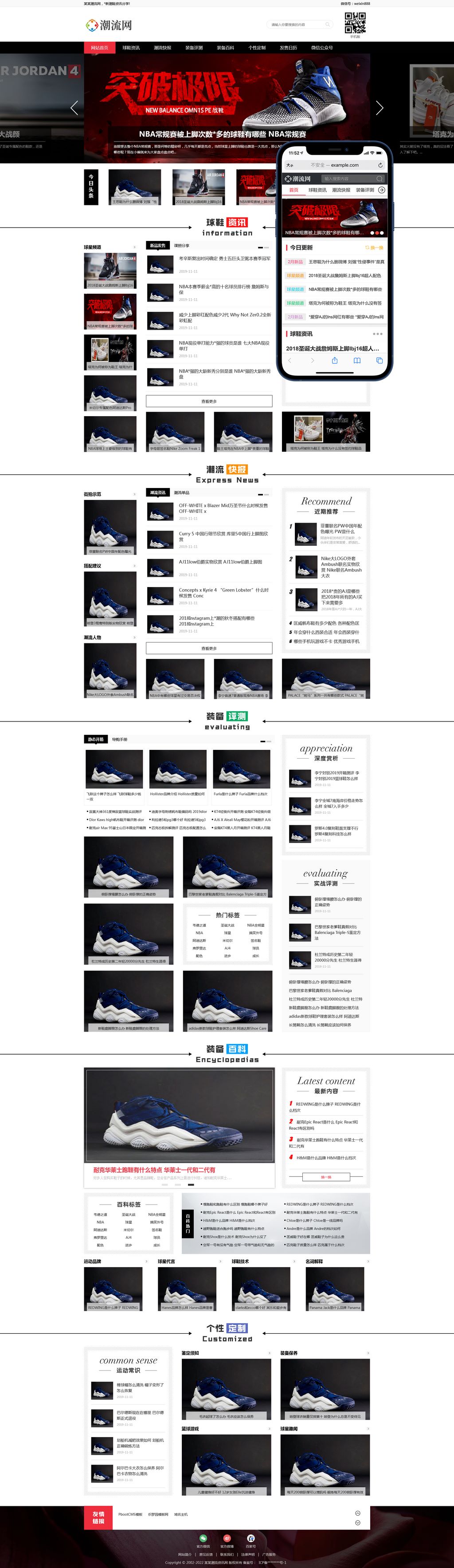 (带手机端)潮牌鞋球鞋潮流新闻资讯类网站pbootcms模板