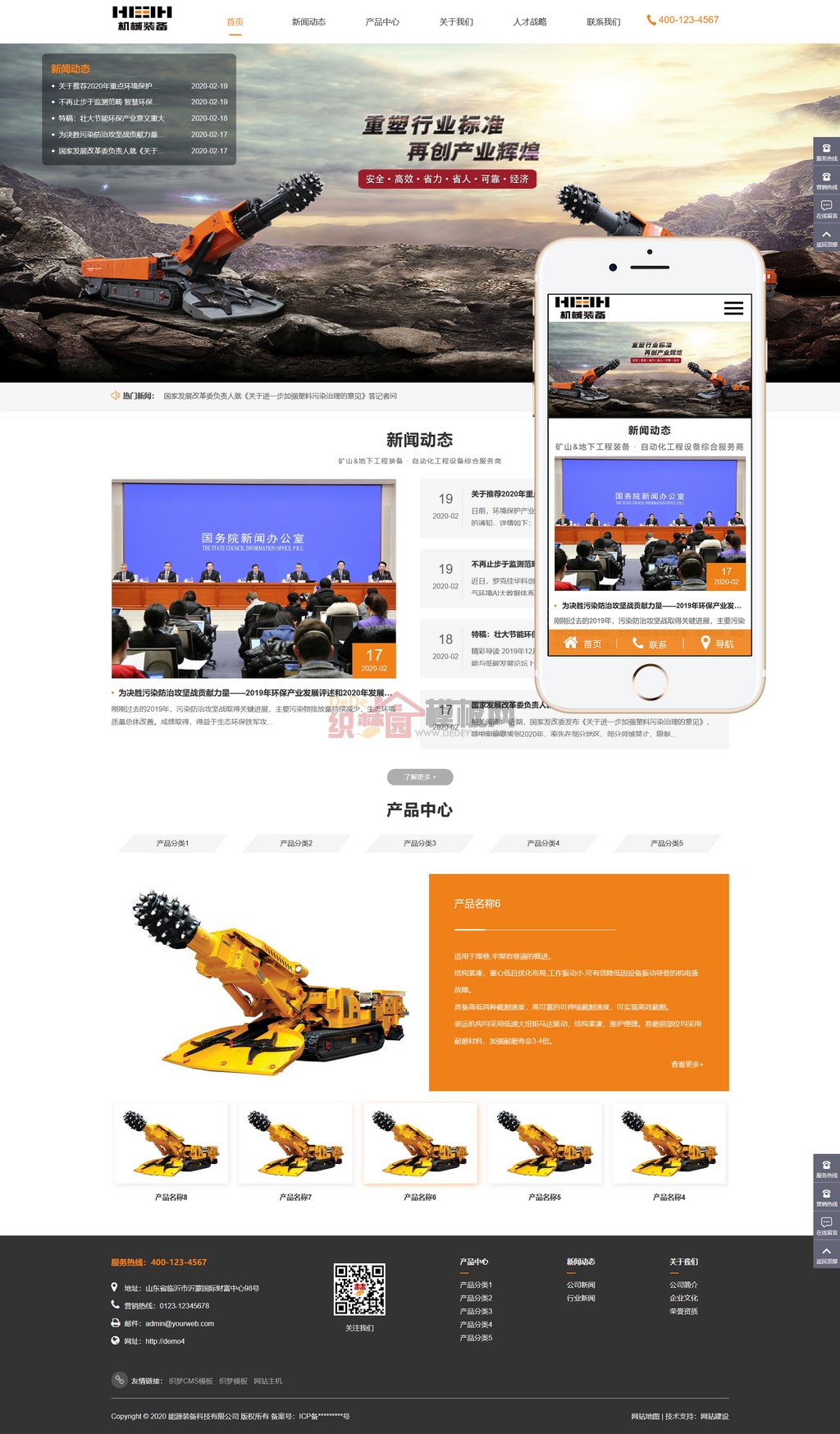 模板介绍:橙色大气宽屏HTML5响应式自适应重工机械、产品展示类织梦企业模板,本套模板整站宽屏样式设计,自适应代码设计,界面以橙色主题风格样式设计,内页多套样式模板页面设计,模板代码书写规范,内容调用完整,演示数据亲自添加,数据库无冗余表完整备份,适用于机械科技、重工机械、工程机械等相关机械制造类企业网站使用;直接下载即可使用,更新到2018-01-09版本织梦系统,本织梦模板整站完整打包,直接安装恢复数据即可使用,功能强大,由作者提供免费安装服务,随问随答和技术性指导。本模板基于DEDECms 5.7 UTF-8设计,需要GBK版本的请自己转换。