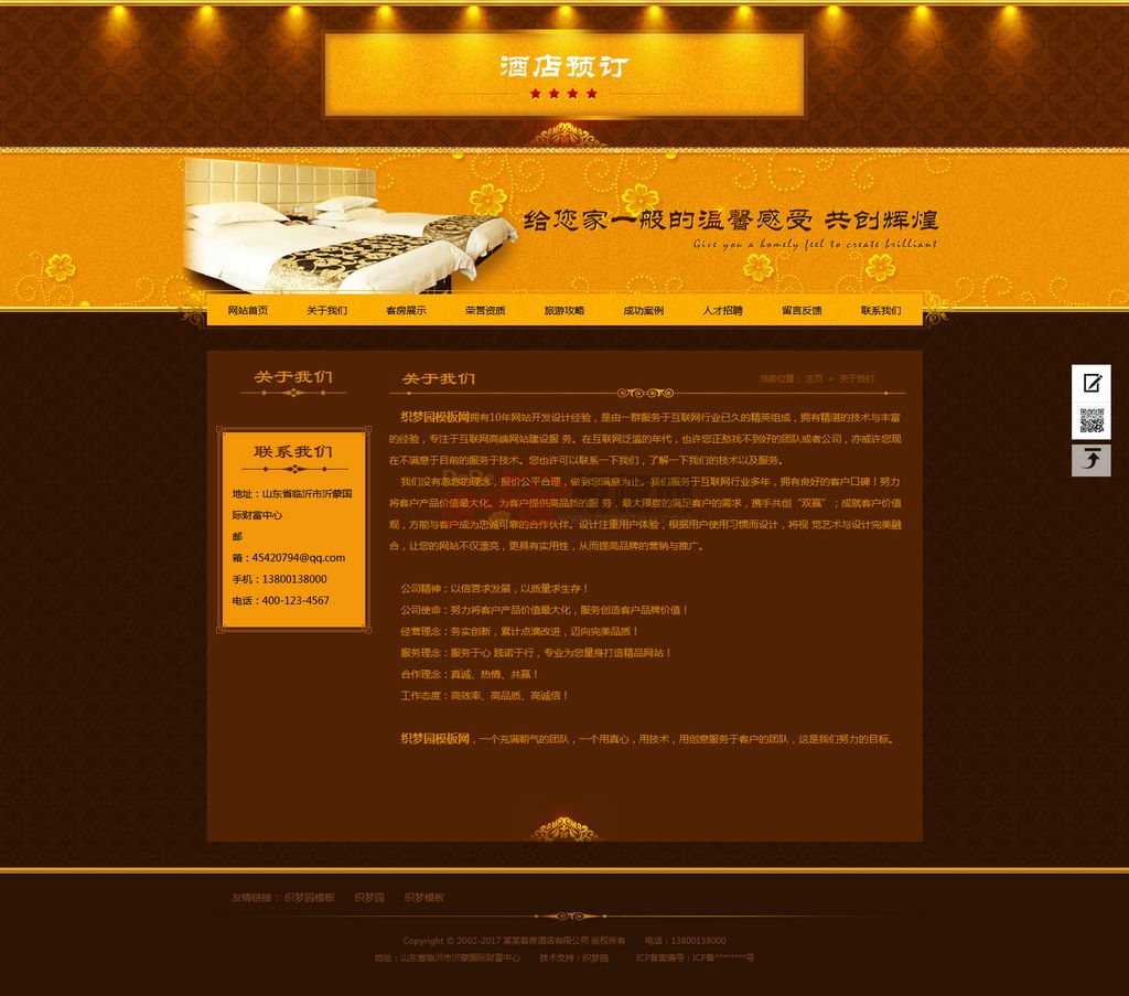 酒店旅馆旅租客房类网站织梦模板(带手机端)。