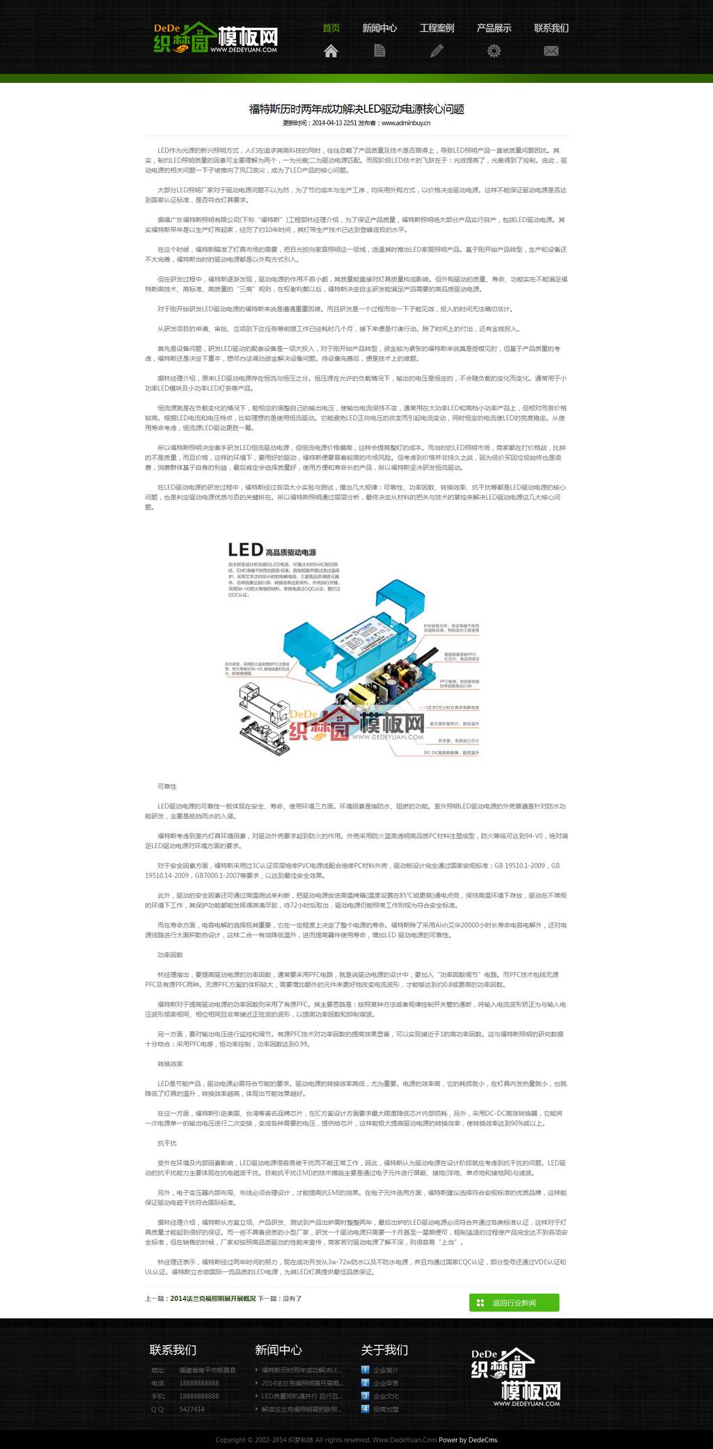精美HTML5能源LED灯企业网站,大气绿色适合绿色能源环保企业使用,黑色大气上档次织梦企业