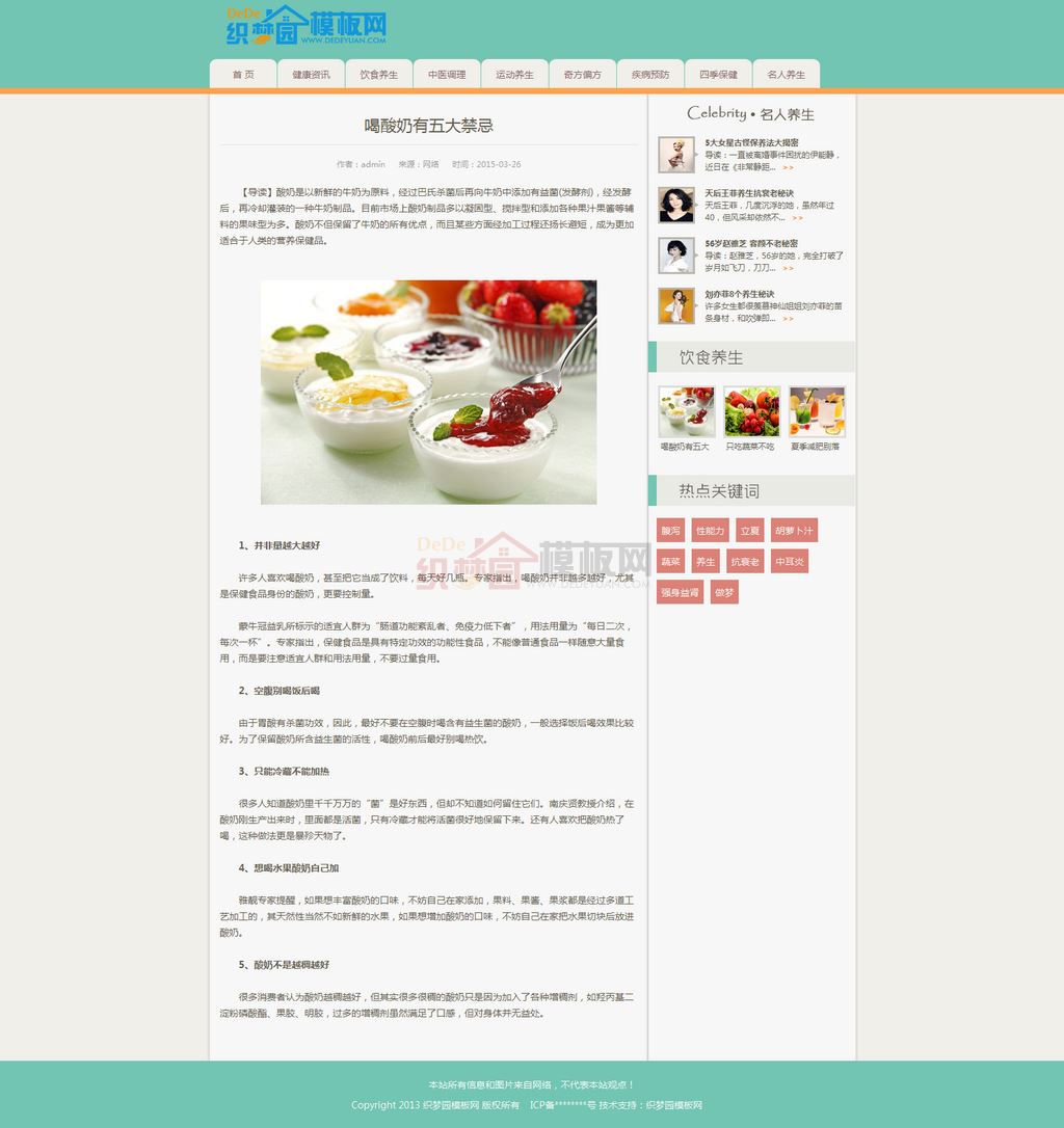 浅绿色健康养生资讯类网站织梦模板免费下载