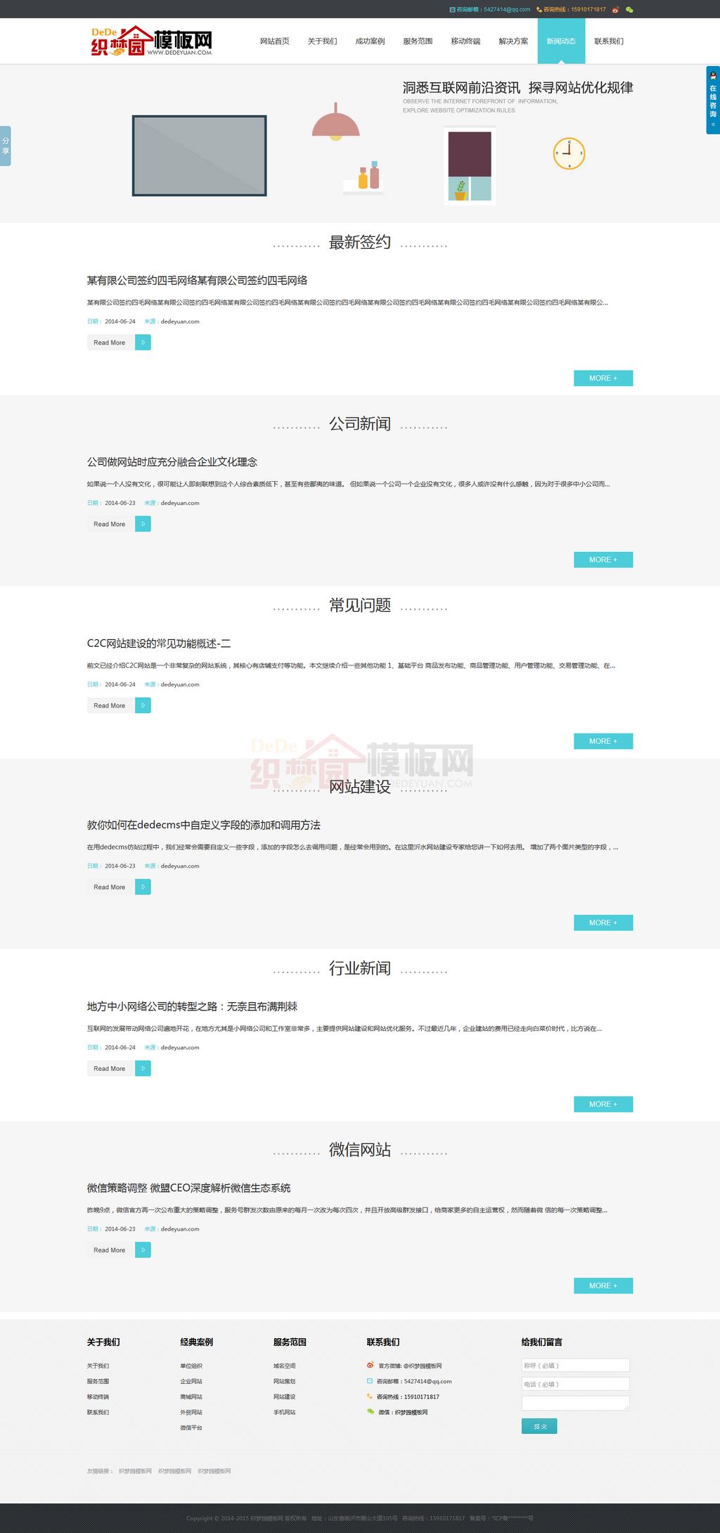 HTML5浅蓝dede大气网络公司_瀑布流展示织梦源码整站