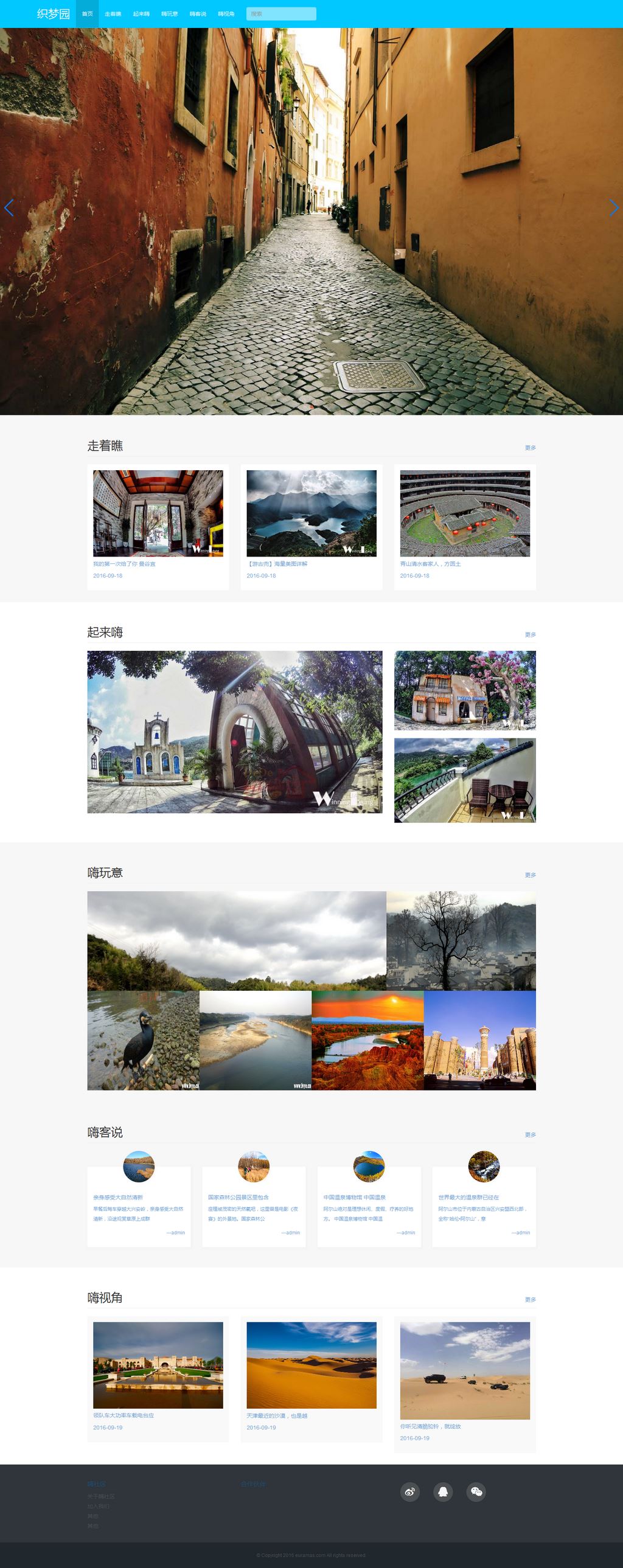 蓝色HTML5响应式旅游照片分享织梦模板下载