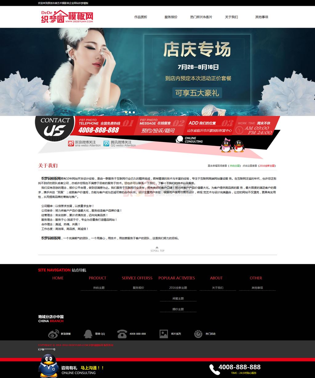 红色大气艺术摄影类织梦企业模板,本套模板属于VIP会员模板,本站免费提供大家下载,整站测试完整无错,带所有测试数据,后台系统完整,内容展示丰富,首页大气时尚,界面设计唯美,红色大气时尚,适合婚纱摄影机构、古典艺术摄影工作室、摄影设计婚纱摄影店等机构使用;本模板由织梦园团队做了精简和简化,修改了数据库多余的表,修改了模板和样式文件,删除多余的无用链接和图片,织梦园团队力求提供精简代码的高品质模板。保证源码和演示图片一模一样,本地下载后按照安装教程步骤操作,直接还原可用。免费提供给广大朋友下载,本站随问随答和技术性指导。本模板基于DEDECms 5.7 UTF-8设计,需要GBK版本的请自己转换。