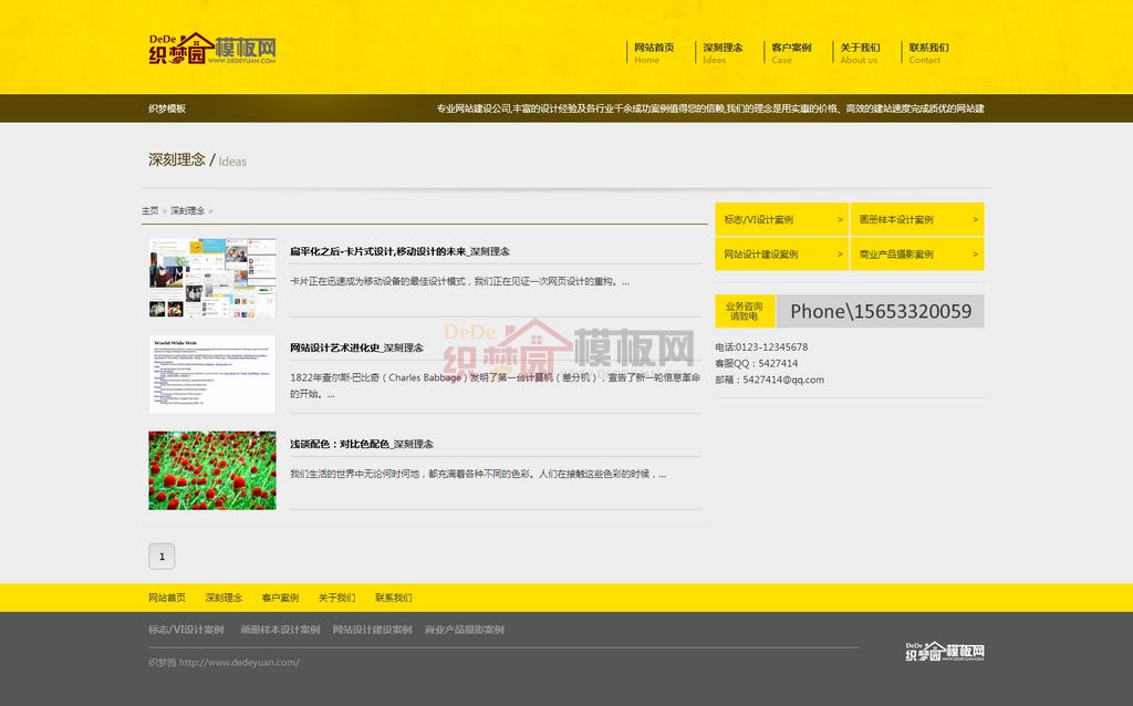黄灰色宽屏样式大气网络设计类织梦模板,本套模板整站黄色配色,灰色搭配,样式设计宽屏大气,首页界面设计排版比较简洁大方,后台数据完整调用,修复了部分错误,数据库完整无冗余备份,整站适用于网络设计公司、网站建设类公司网站使用,升级最新织梦系统。保证源码和演示图片模一样,本地下载后按照安装教程步骤操作,直接还原可用。免费提供给广大朋友下载,本站随问随答和技术性指导。本模板基于DEDECms 5.7 UTF-8设计,需要GBK版本的请自己转换。