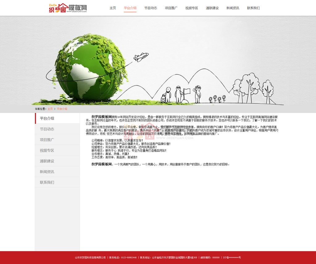 红色时尚文化传媒公司织梦企业模板,本套模板整站比较清新简洁,导航高亮当前栏目展示,宽屏大图banner轮播展示,内页列表页等设计比较简洁明了,内容展示清晰,首页样式简洁大方,整体红色主题,数据完整,数据库完整备份,适用于文化传媒、公关类型的网站使用,升级最新的2017版本的织梦系统。保证源码和演示图片模一样,本地下载后按照安装教程步骤操作,直接还原可用。免费提供给广大朋友下载,本站随问随答和技术性指导。本模板基于DEDECms 5.7 UTF-8设计,需要GBK版本的请自己转换。