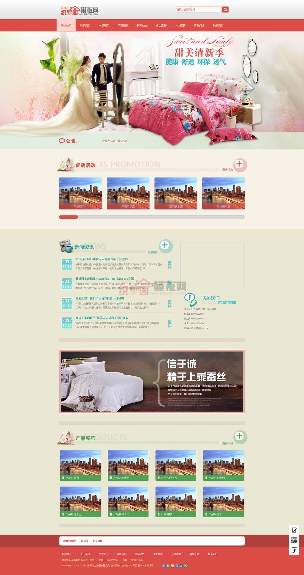 粉红色婚庆床上用品类织梦企业模板,带手机端,本套模板整站宽屏样式设计,粉红色主题界面,整站演示数据完整,数据调用无错,修改了部分错误,数据库整理了冗余垃圾表,精简大气时尚大方,适用于床上用品等产品展示型网站使用,升级最新织梦底层系统,本织梦模板整站完整打包,直接安装恢复数据即可使用,功能强大,由作者提供免费安装服务,随问随答和技术性导。本模板基于DEDECms 5.7 UTF-8设计,需要GBK版本的请自己转换。