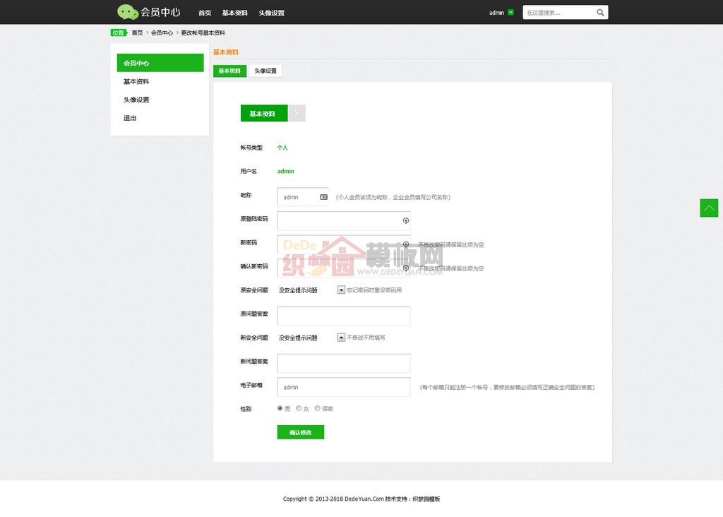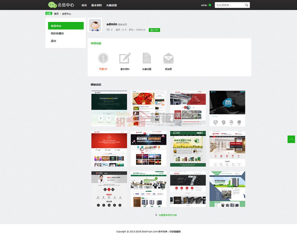 绿色简洁时尚织梦会员中心模板 绿色简洁清新织梦会员中心模板,本套模板二次开发为绿色版本,样式设计比较清新简洁,内容完整,测试完整可用,需要使用的可以进行二次开发修改,基本上满足大部分需求;本套模板来源网络,织梦园做了部分修改,修复了后台部分错误,精简了数据表,删除不必要的代码。本模板基于DEDECms 5.7 GBK设计,需要UTF-8版本的请自己转换。 将解压出的文件夹member直接上传网站根目录覆盖原文件,或者将原文件夹member删除,再上传 后台启用会员功能。
