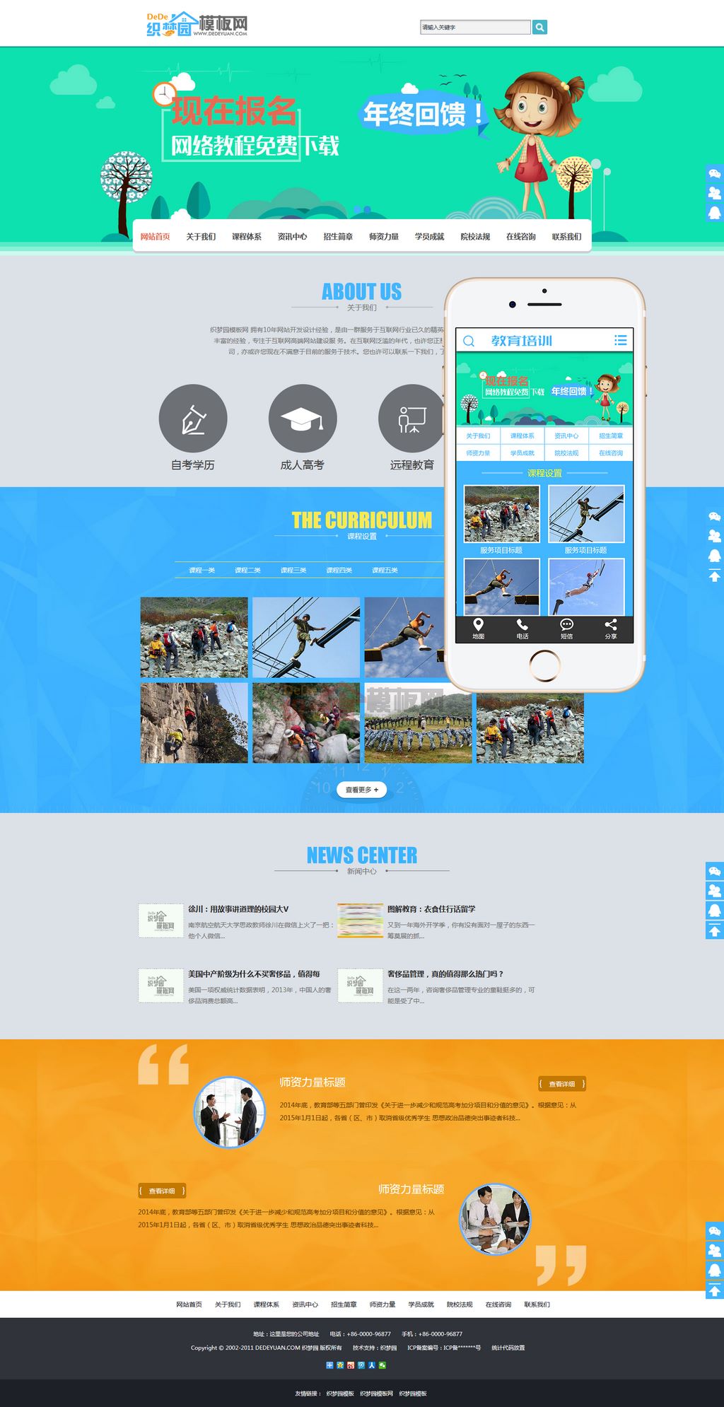 蓝色宽屏教育招生培训机构类织梦企业模板,带有wap手机端模板,本套模板整站宽屏样式设计,导航高亮当前栏目带有下拉菜单功能,首页banenr宽屏轮播展示,排版布局合理,内容展示丰富全面,演示数据调用完整,模板设计简洁大气,数据库完整无冗余备份,适用于教育培训机构、招生服务类公司企业网站使用;本套模板来源网络,织梦园做了部分修改,修复了后台部分错误,精简了数据表,删除不必要的代码;升级最新织梦底层系统,本织梦模板整站完整打包,直接安装恢复数据即可使用,功能强大,由作者提供免费安装服务,随问随答和技术性指导。本模板基于DEDECms 5.7 UTF-8设计,需要GBK版本的请自己转换。