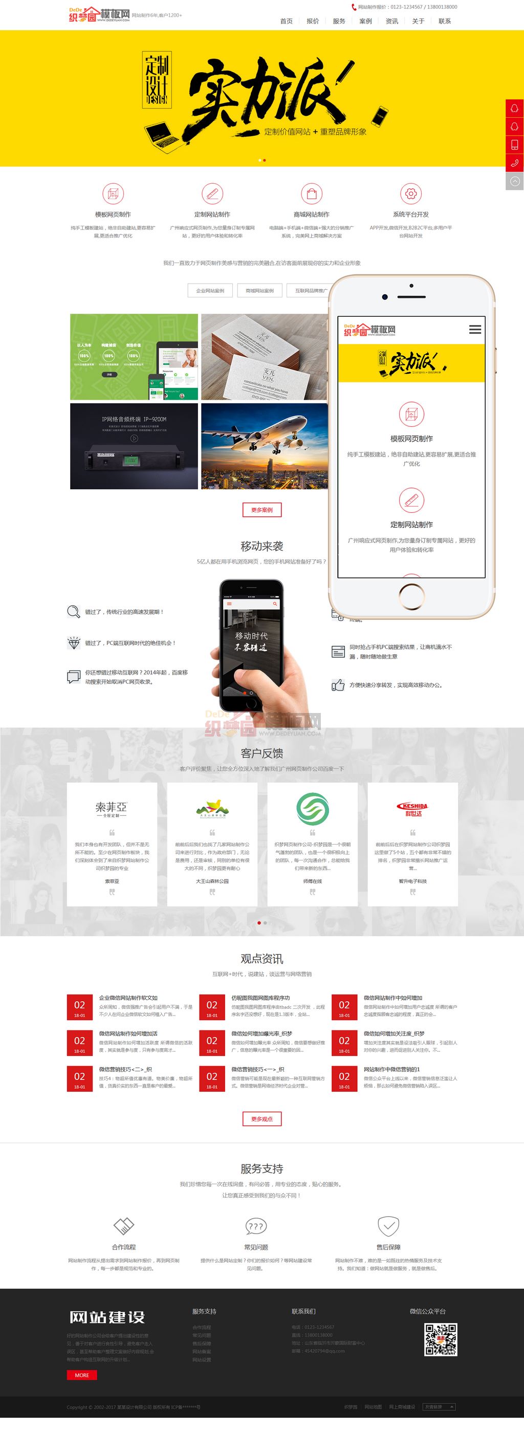 红色大气响应式HTML5网络设计公司织梦企业模板,响应式自适应代码设计,整站红色样式主题风格,界面清新简洁大气,内容展示丰富全面,结构清晰合理,内容完整调用,内页多种样式模板设计,整站数据库完整无冗余表备份,适用于网络设计公司、网站制作公司等相关公司企业网站使用;升级最新织梦底层系统,本织梦模板整站完整打包,直接安装恢复数据即可使用,功能强大,由作者提供免费安装服务,随问随答和技术性指导。本模板基于DEDECms 5.7 UTF-8设计,需要GBK版本的请自己转换。