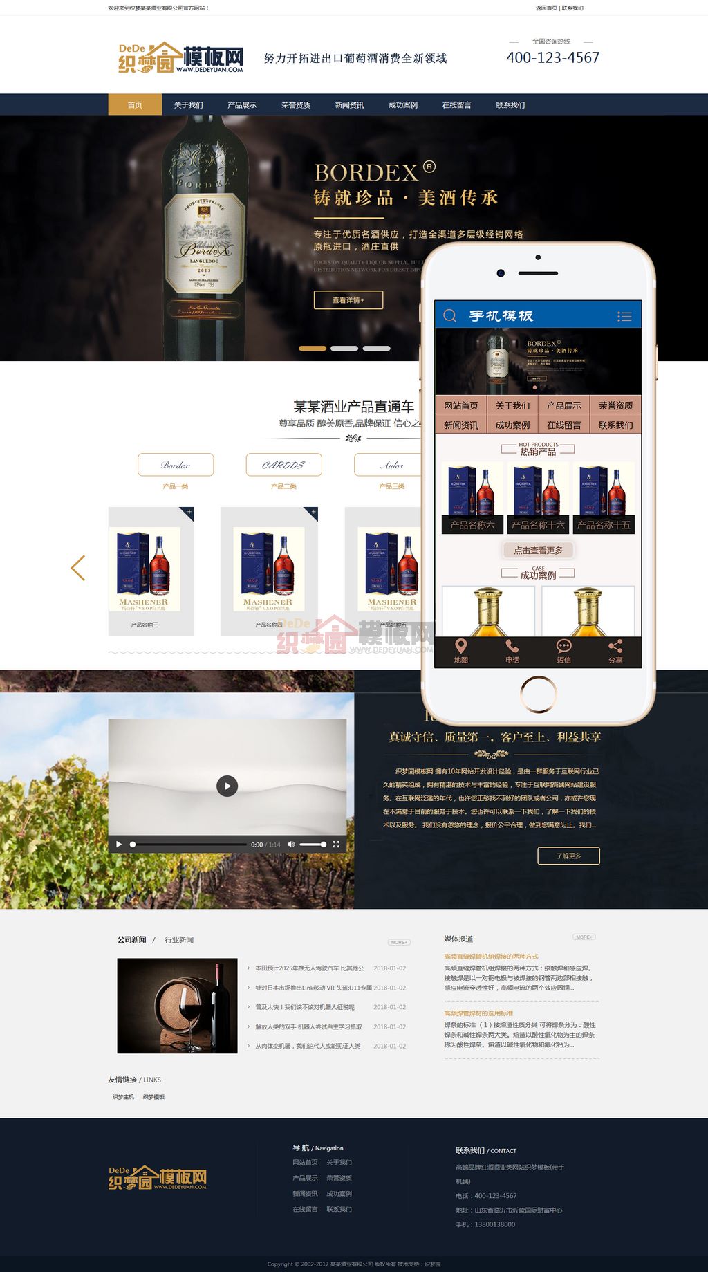 高端品牌红酒酒类食品类网站织梦模板(带手机端)