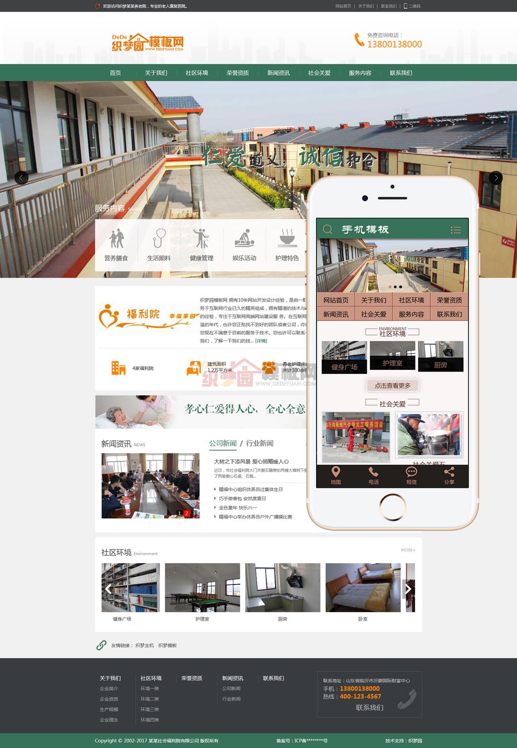 绿色大气社会福利院养老院等社会福利类织梦模板下载,本套模板整站以绿色主题风格设计,样式精美导航带有二级菜单展示,首页界面布局合理内容排版样式精美数据展示丰富,调用完整,数据库无冗余表完整备份,内页多套样式模板页设计,带有wap手机端模板,数据自动同步,手机访问自动跳转,整站数据完整,适用于社会福利中心、福利养老院等相关行业网站使用;升级2018年最新织梦底层系统,本织梦模板整站完整打包,直接安装恢复数据即可使用,功能强大,由作者提供免费安装服务,随问随答和技术性指导。本模板基于DEDECms 5.7 UTF-8设计,需要GBK版本的请自己转换。
