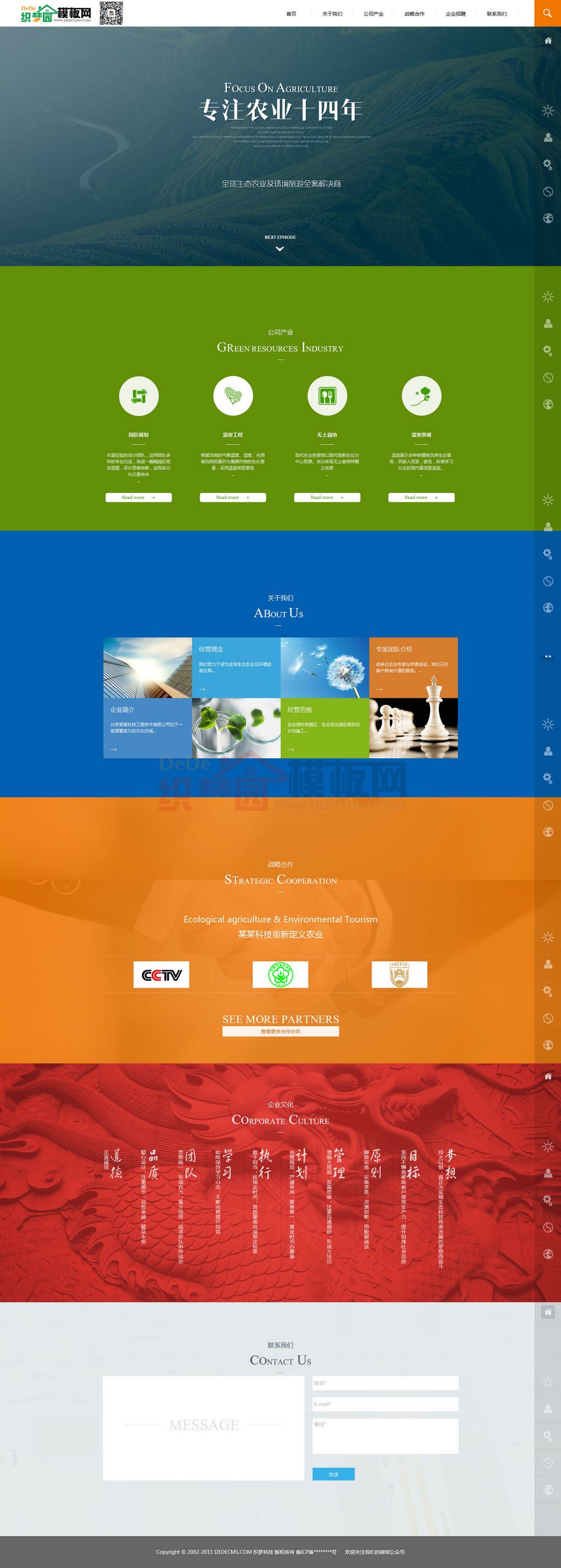 HTML5大气绿色农业科技类织梦企业模板,整站HTML5设计,样式丰富,全屏大气时尚,内容大气十足,看图片效果看不出来,建议下载安装后再体验;本站数据库和代码都做了精简和简化,织梦园模板网提供高质量精简代码设计模板。本织梦模板整站完整打包,直接安装恢复数据即 可使用,功能强大,由作者提供免费安装服务, 随问随答和技术性指导。本模板基于DEDECms 5.7UTF-8设计,需要GBK版本的请自己转换。