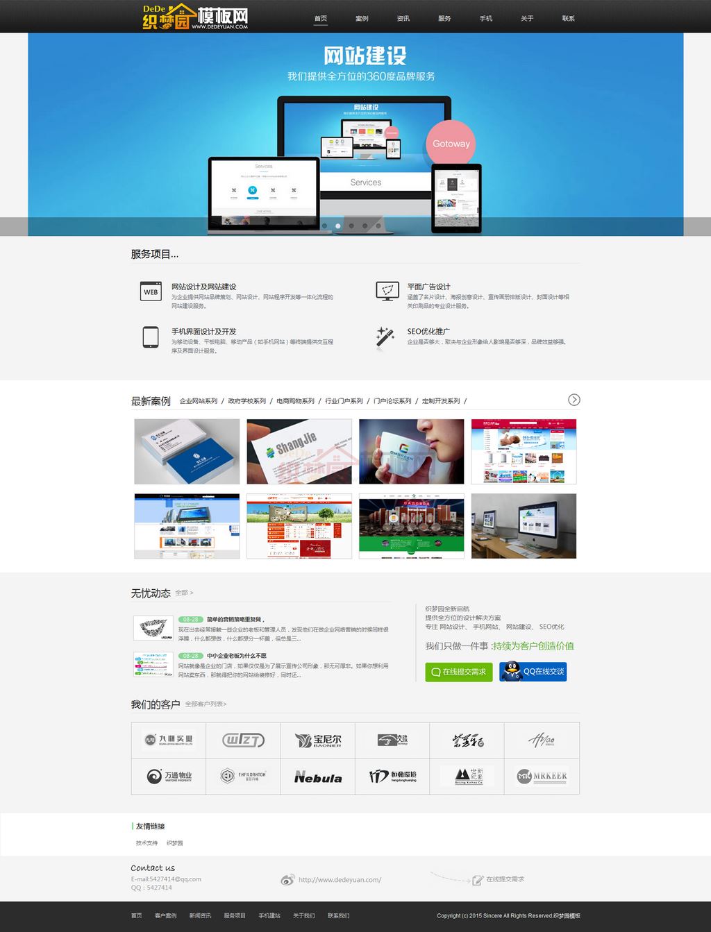 大气时尚HTML5多色彩织梦网络公司企业模板,首页大屏轮播banner,服务内容项目案例等内容都可以从后台调用,案例内容使用图集模块,添加部分变量,使内容展示更丰富;总体本站设计大方合理,大气时尚,HTML5设计跟随潮流;适合大部分网络网站建设公司,广告名片设计公司等网络展示型公司企业使用;本站数据库和代码都做了精简和简化,织梦园模板网提供高质量精简代码设计模板。本织梦模板整站完整打包,直接安装恢复数据即可使用,功能强大,由作者提供免费安装服务,随问随答和技术性指导。本模板基于DEDECms 5.7 UTF-8设计,需要GBK版本的请自己转换。