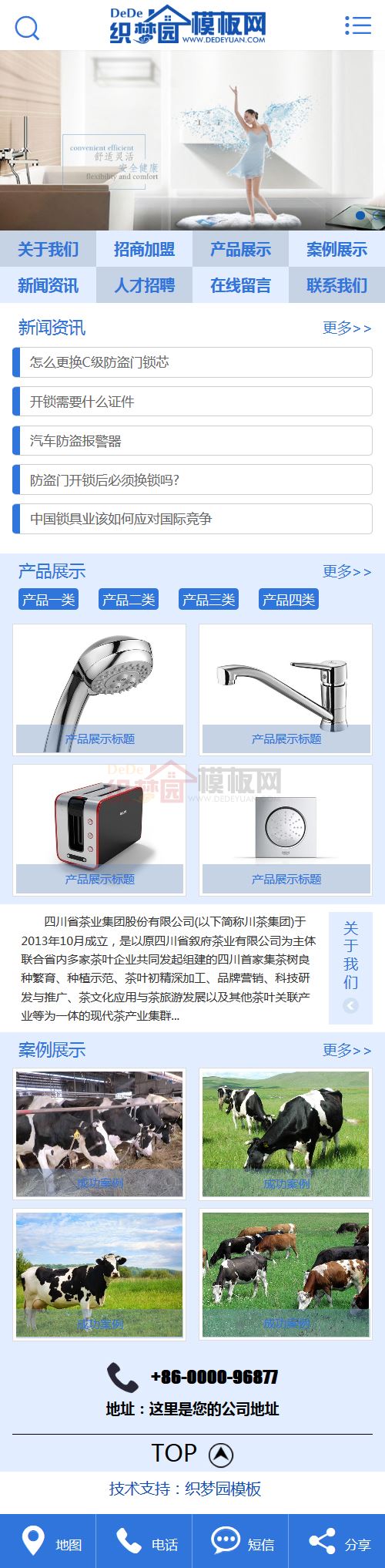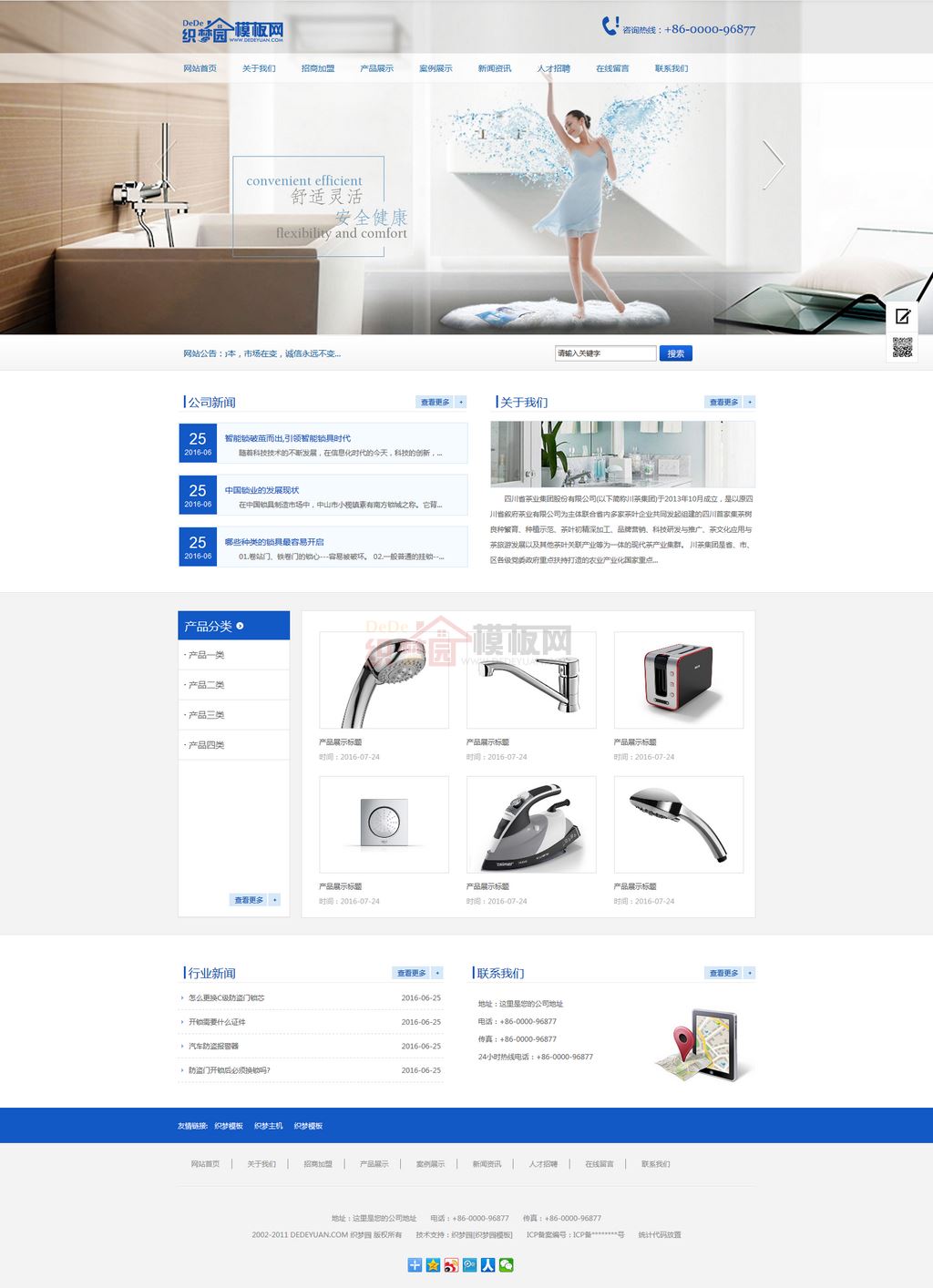 蓝色大气清新pc+手机版家用电器类织梦企业模板,本套模板首页简洁大方,蓝色主题色调,内容展示丰富,导航带有下拉菜单功能,内页设计多套精美列表页模板,产品展示采用图集模型,管理修改方便快捷,带有手机端模板,pc+手机两套模板,适合大部分家用电器家庭装修用品类行业公司企业使用;直接下载即可使用,升级到2016年最新织梦系统,本织梦模板整站完整打包,直接安装恢复数据即可使用,功能强大,由作者提供免费安装服务,随问随答和技术性指导。本模板基于DEDECms 5.7 UTF-8设计,需要GBK版本的请自己转换。