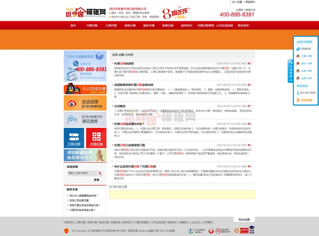 红色金融财务理财公司织梦企业模板,本套模板整站红色配色,简洁大方,界面设计巧妙合理,导航banner样式设计大气十足,展示栏目丰富,利于SEO优化设计,内容完整,后台数据测试无错,比较适合财务代理、财务记账等金融类机构、公司、企业网站使用;直接下载即可使用,升级到2016年最新织梦系统,本织梦模板整站完整打包,直接安装恢复数据即可使用,功能强大,由作者提供免费安装服务,随问随答和技术性指导。本模板基于DEDECms 5.7 GBK设计,需要UTF-8版本的请自己转换。