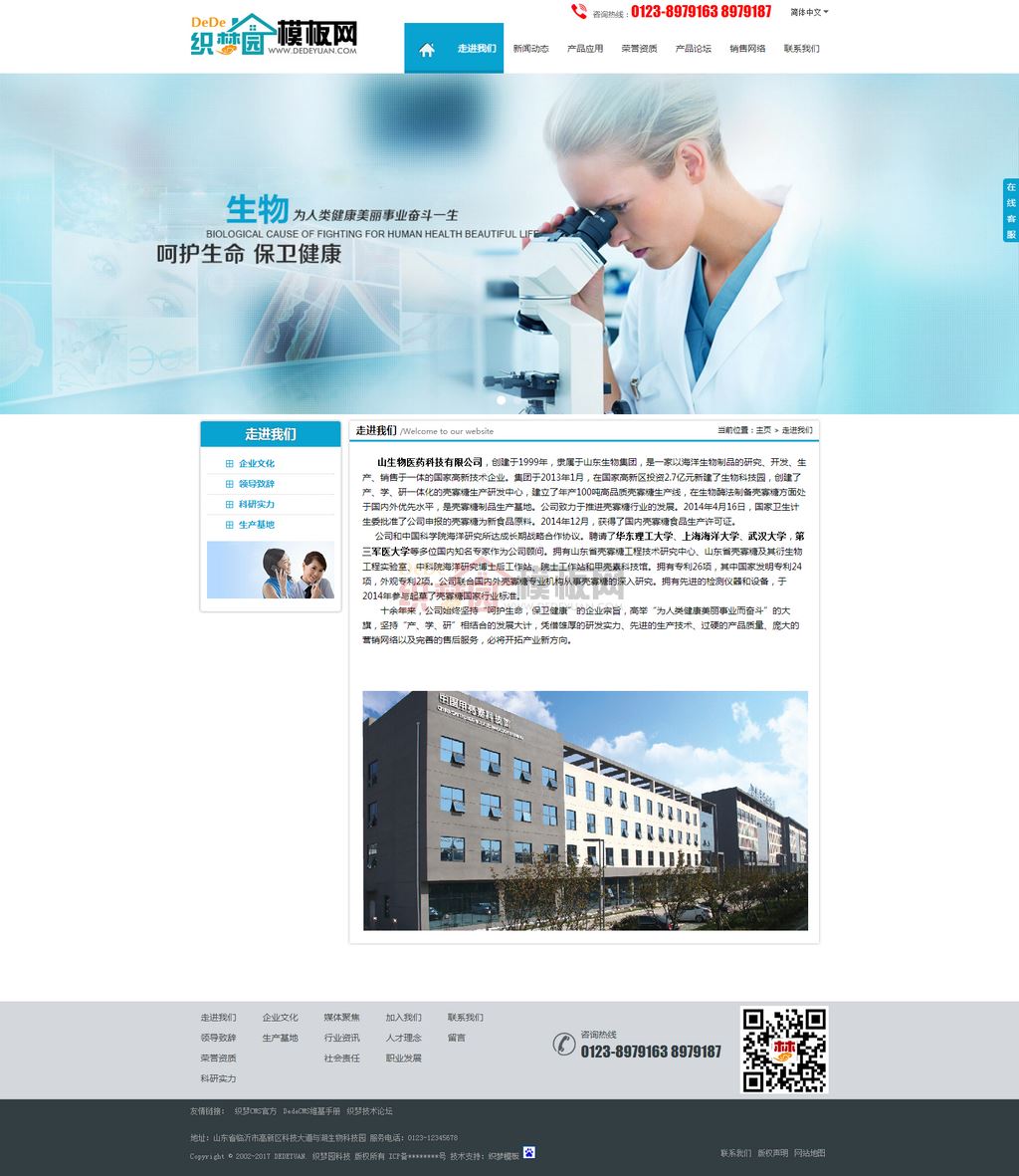 亲仿蓝色生物医药科技类织梦企业模板,本套模板整站宽屏大气时尚,导航高亮当前栏目,栏目分类明确,后台数据亲自添加,整站比较简洁清新,大气时尚,比较适合生物科技、医药医疗科技等相关行业公司企业使用;直接下载即可使用,升级到2017年最新织梦系统,本织梦模板整站完整打包,直接安装恢复数据即可使用,功能强大,由作者提供免费安装服务,随问随答和技术性指导。本模板基于DEDECms 5.7 UTF-8设计,需要GBK版本的请自己转换。