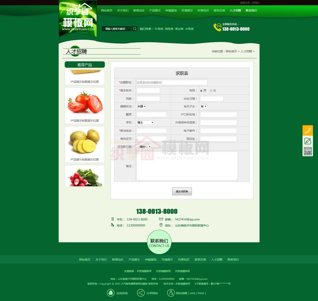 本精品绿色蔬果仿制网站,自制精仿带下拉菜单,数据完整,添加留言验证和招聘表单,所有数据均为自己添加,适用于蔬菜水果类企业网站,全部已数据调用,只需后台修改栏目名称即可。由作者提供免费安装服务,随问随答和技术性指导。本模板基于DEDECms 5.7 UTF-8设计,需要GBK版本的请自己转换。