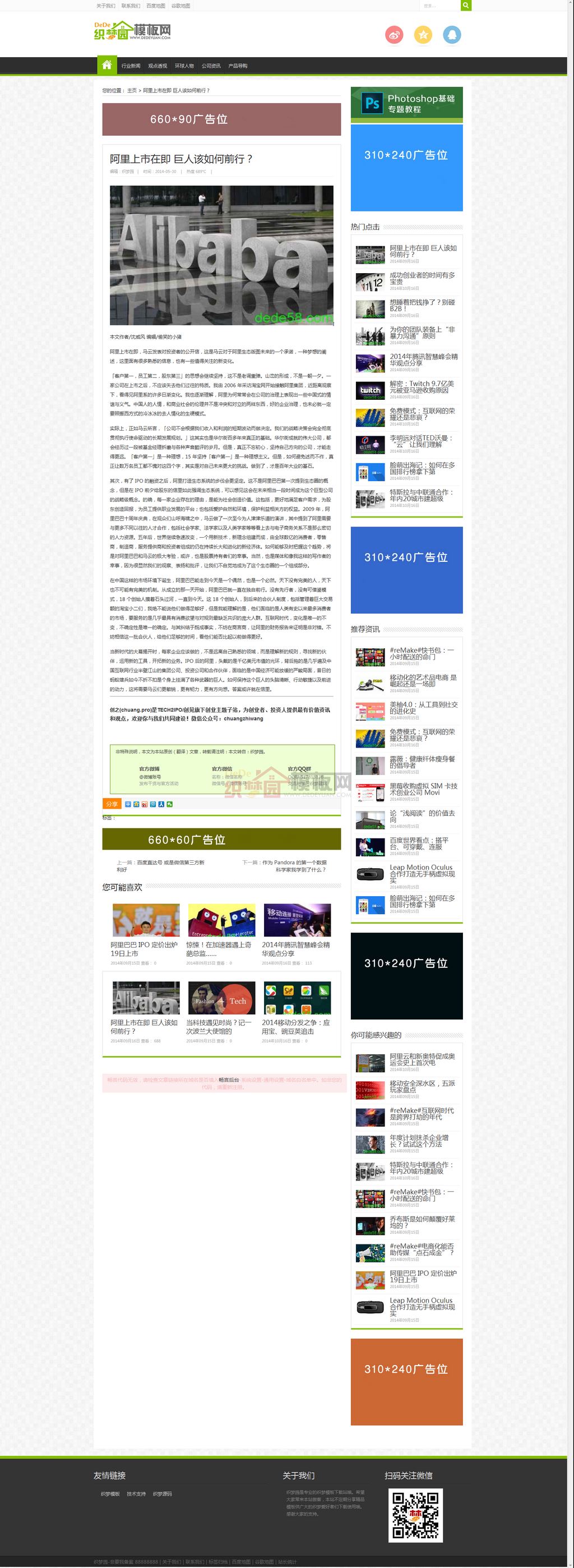 响应式HTML5自适应文章博客类织梦模板,本套模板整站响应式设计,自适应移动设备代码设计,整站绿色样式,首页样式展示丰富,内容完整,后台带可以数据采集,整站带数据完整,数据库表无冗余,整体简约时尚大方得体,适合文章资讯类博客网站使用;升级到2017年最新织梦系统,本套织梦模板整站完整打包,直接安装恢复数据即可使用,功能强大,由作者提供免费安装服务,随问随答和技术性指导。本模板基于DEDECms 5.7 UTF-8设计,需要GBK版本的请自己转换。