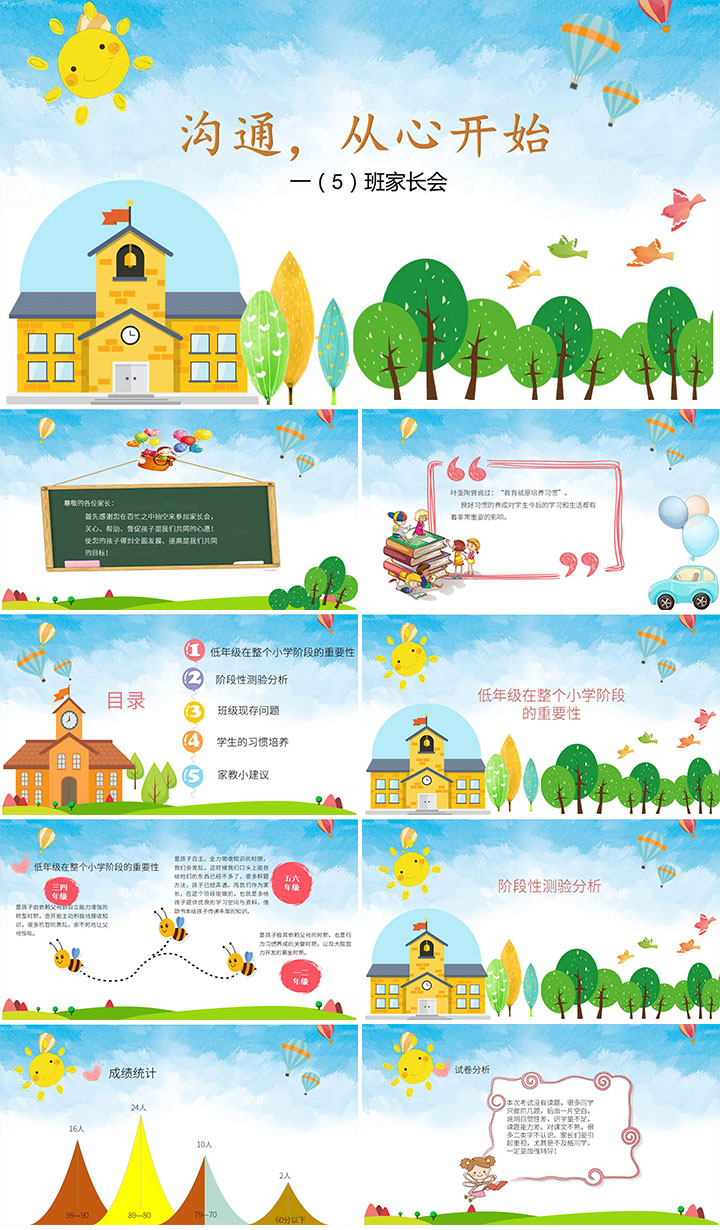 本作品内容为孩子我们未来的希望一年级家长会PPT模板,请使用办公软件PowerPoint打开,作品中文字及图均可以修改和编辑,图片更改请在作品中右键图片并更换,文字修改请直接点击文字进行修改,也可以新增和删除作品中的内容,欢迎使用织梦园PPT模板。 免责声明:本站所有PPT模板资源均来自用户分享和网络收集,仅供学习与参考,请勿用于商业用途,如果损害了您的权利,请联系网站客服处理。