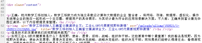 没办法,由于用手机无法查看源代码,所以就在电脑上打开网站,然后查看源代码,发现文章中的图片还是保留了PC网页img标签原有的格式设定没有过滤掉,从而导致css文件中设置的img样式无效。如下图: