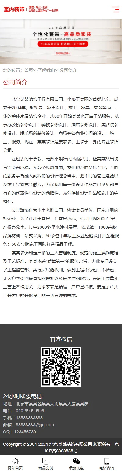 模板名称:室内装修有限公司通用响应式模板+域名授权(购买后请联系客服添加域名授权)